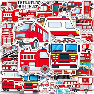 50pcs Fire Engine Stickers for Children, Cute Cartoon PVC Waterproof Kids Sticke..